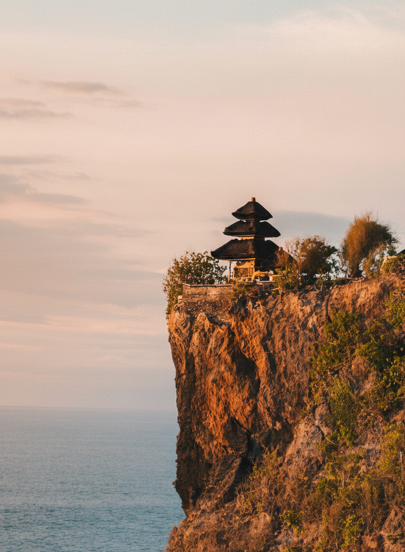 Visit the iconic Uluwatu Temple, perched on a dramatic clifftop 70 meters above the sea, one of Bali’s most breathtaking cultural landmarks.