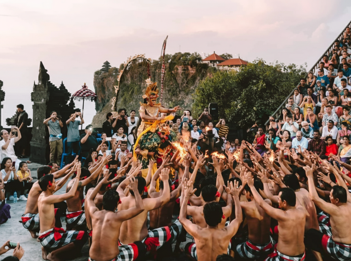 Witness the spectacular Kecak Fire Dance at sunset, a traditional Balinese performance that combines chanting, fire, and storytelling.